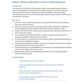 Crynodeb Gweminar - Yr Athro Helen Minnis