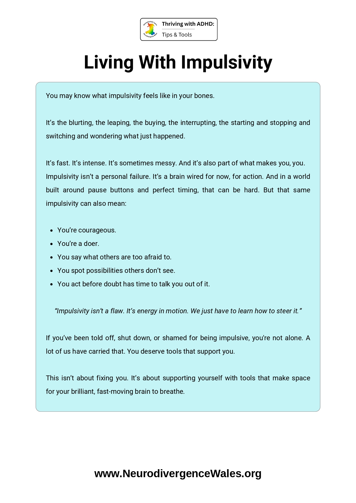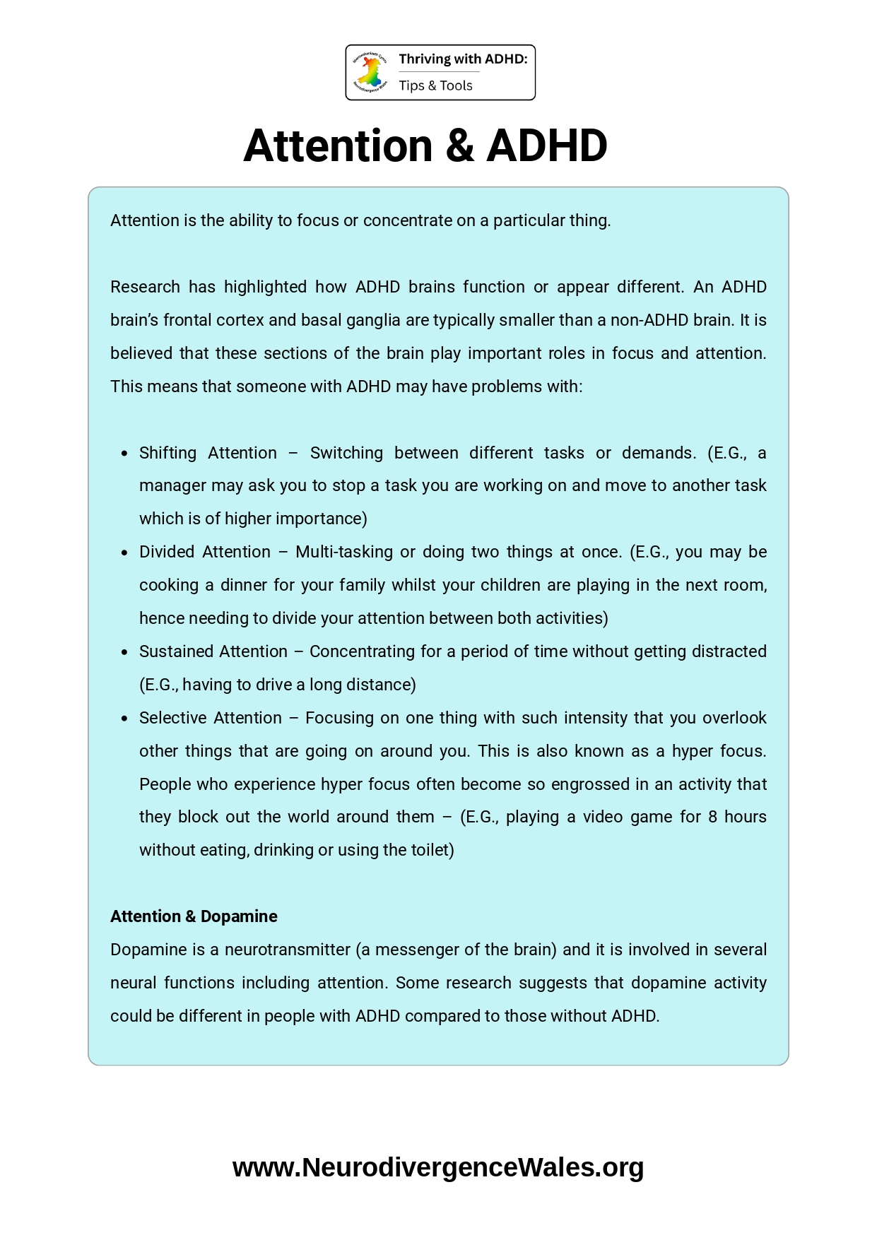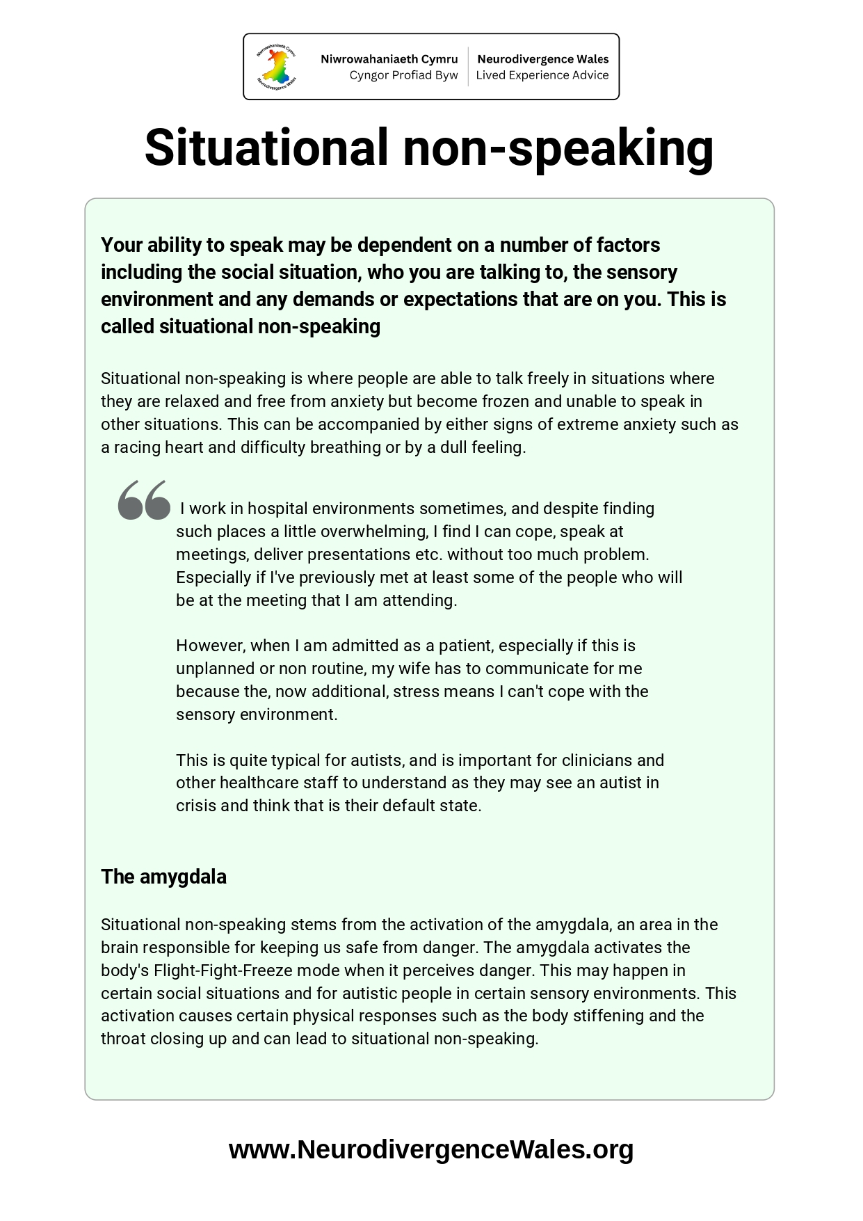 The process of updating the resources on the Neurodivergence Wales website is ongoing, and we are always keen to seek people’s feedback in order to do this. Please use this form to comment on any of the resources on the website.
